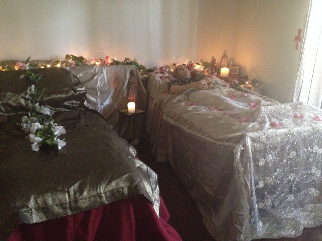 Home Funeral and Cremation This event was a Home Funeral of elderly lady who passed away in her home. We lovingly prepared the body with the daughter, washed and dressed the decedent in her finery and decorated the bedroom. We set up a living room space for coffee and hors d’oeuvres as is the tradition of…